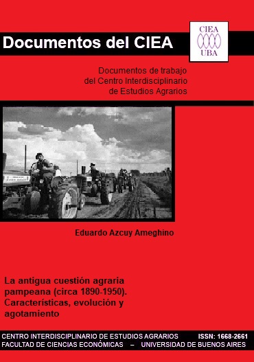 El Centro Interdisciplinario de Estudios Agrarios edita dentro de su serie «Documentos de trabajo» el estudio de Eduardo Azcuy Ameghino considerando «La antigua cuestión agraria pampeana (circa 1890-1950) Características, evolución y agotamiento».
